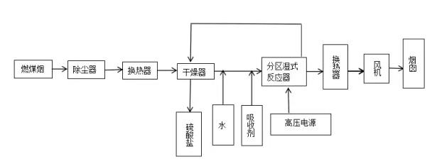 等離子體分解法是在外加電場(chǎng)的作用下,介質(zhì)放電產(chǎn)生的大量攜能電子轟擊污染物分子,引發(fā)了一系列復(fù)雜的物理、化學(xué)反應(yīng),從而使污染物得以降解去除的一種廢氣治理方法。工藝流程圖如下: